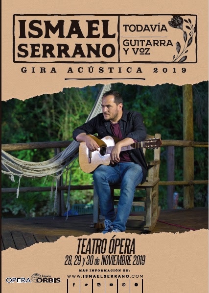 ISMAEL SERRANO presenta ¨Todavía¨, un show a guitarra y Voz en el Teatro Ópera Orbis los días jueves 28, viernes 29 y sábado 30 de Noviembre.