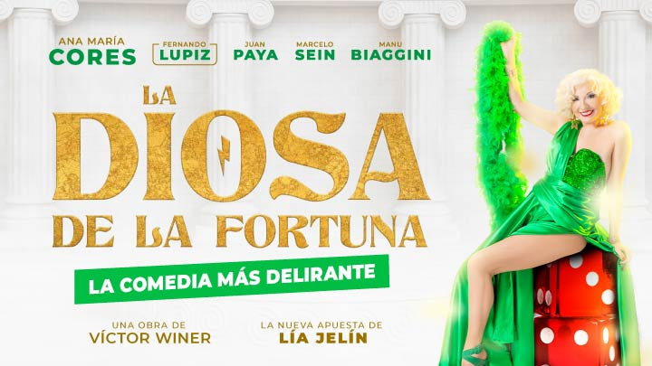 Escrita por Victor Winer y bajo la direccion de la gran Lia Jelin en LA DIOSA DE LA FORTUNA vas a descubrir una comedia original protagonizada por una genial Ana Maria Cores.